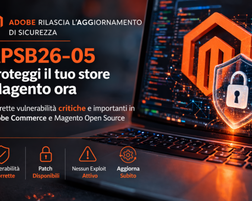 Adobe ha rilasciato un nuovo bollettino di sicurezza (APSB26-05) per Adobe Commerce e Magento Open Source, pubblicato il 10 marzo 2026 e classificato con priorità 2.L’aggiornamento risolve vulnerabilità di gravità critica, importante e moderata che, se sfruttate, possono portare a escalation di privilegi, esecuzione di codice arbitrario, bypass dei controlli di sicurezza, denial‑of‑service applicativo e lettura non autorizzata del file…